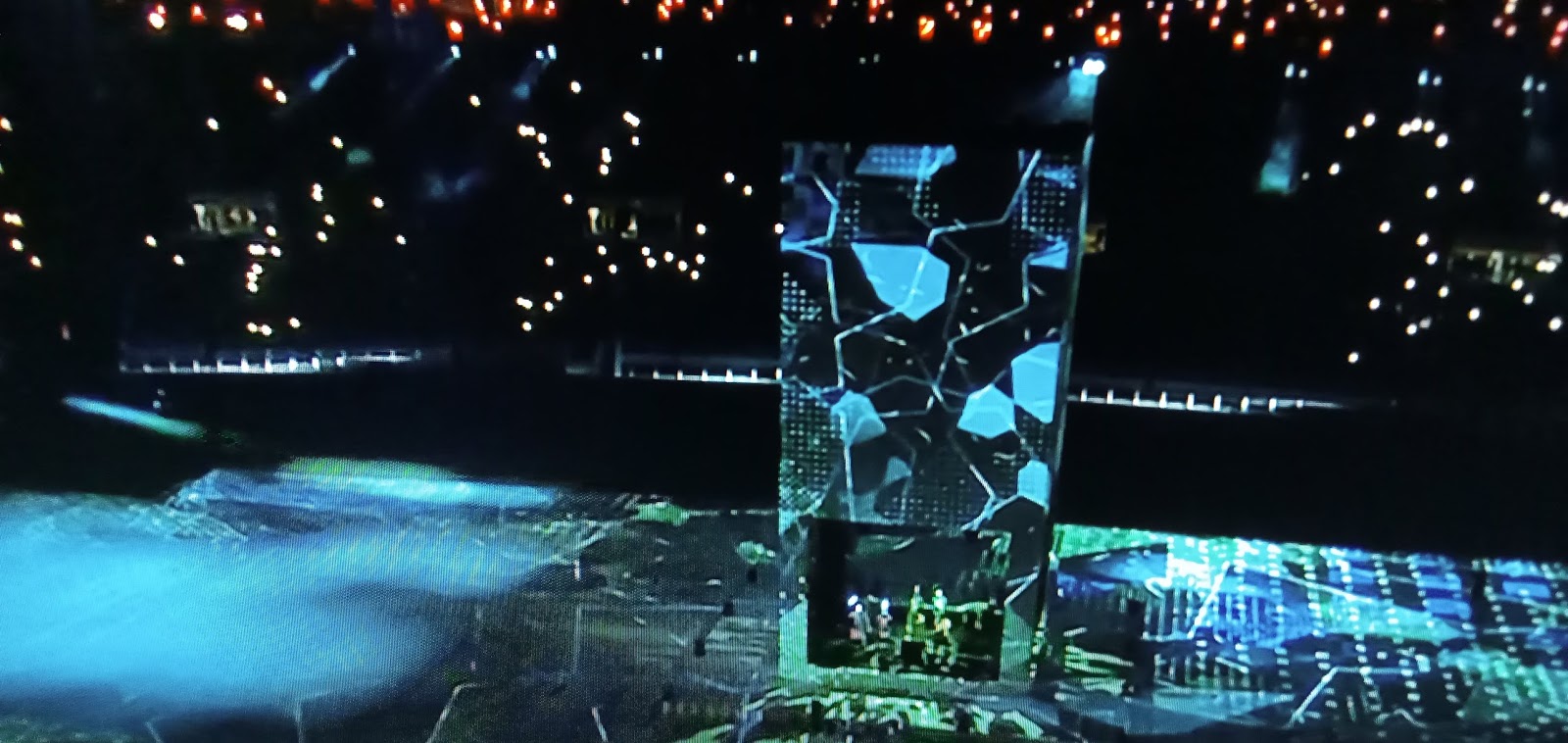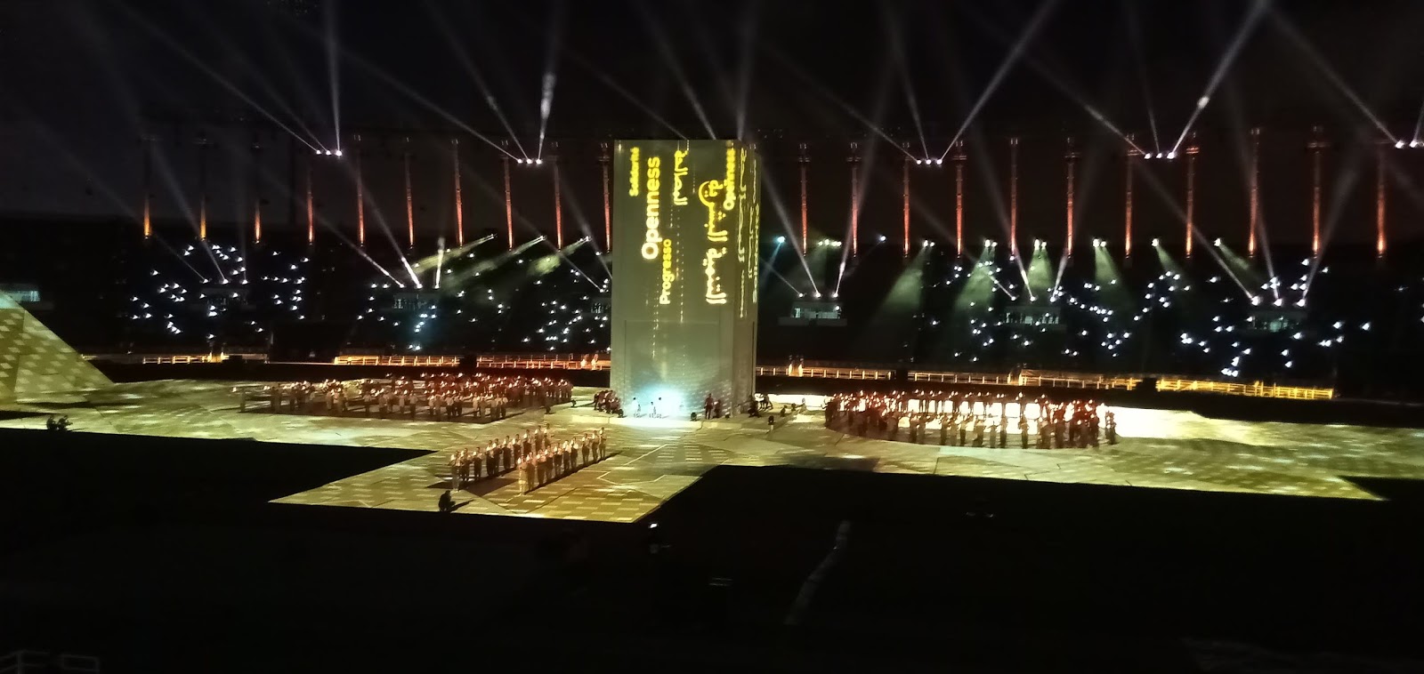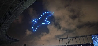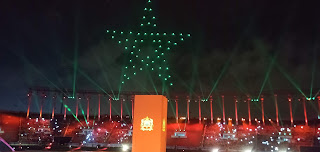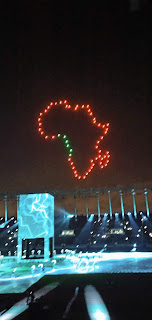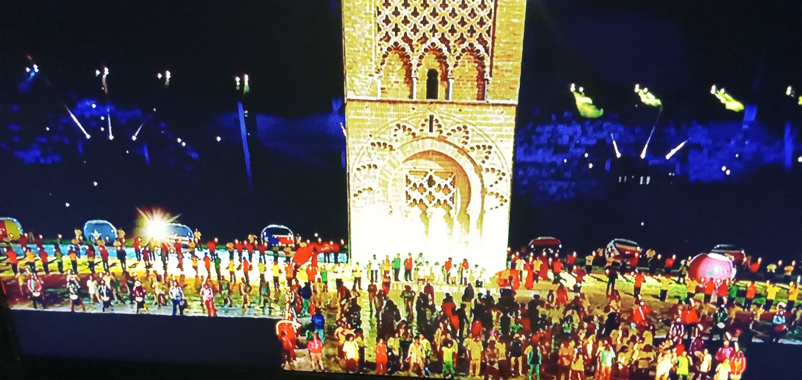 وبالإضافة للوحات التي رسمت على أرضية الميدان وعلى جدران صومعة حسان فسماء الرباط تزينت بالعديد من اللوحات التي رسمتها مجموعة من الطائرات بدون طيار ” Drones ” واكبت فقرات الحفل برسمها لحمامة السلام، و النجمة الخماسية لراية المغرب وللقارة الإفريقية.